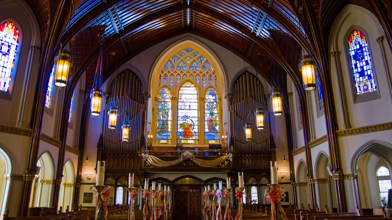 The chapel organ was reconfigured, but the cabinetry is original to the room where the first service was held on Christmas Eve, 1893.