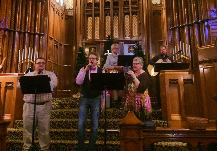 The Praise Team also leads the Call to Celebration as well as the first hymm. Guitar, bass, and piano accompany this group. All are invited to participate.